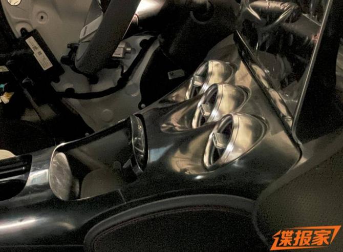 可以看到,新車目前依舊處于試裝階段,我們僅能夠看到中控臺的大致設(shè)計,同時,未來的量產(chǎn)版車型很有可能還會在此基礎(chǔ)上進行調(diào)整。首先,新車依舊采用了家族式設(shè)計語言進行打造,懸浮式大屏沒有缺席,不過,下方的空調(diào)出風口設(shè)計與smart精靈#1有著明顯的區(qū)別,同時,新車中控臺整體呈T字形布局,視覺效果比較規(guī)整;中控臺下方采用了懸浮式設(shè)計,這一點與smart精靈#1有著較高的相似度。