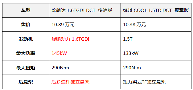 而繽越COOL搭載的1.5T發(fā)動機,最大功率133kW,最大扭矩290N·m,發(fā)動機性能要弱于歐萌達。且其后懸架采用的是扭力梁式非獨立懸架,所以在操控感和乘坐舒適性上,繽越COOL未能強于歐萌達,這也是歐萌達更受年輕性能黨歡迎的原因。