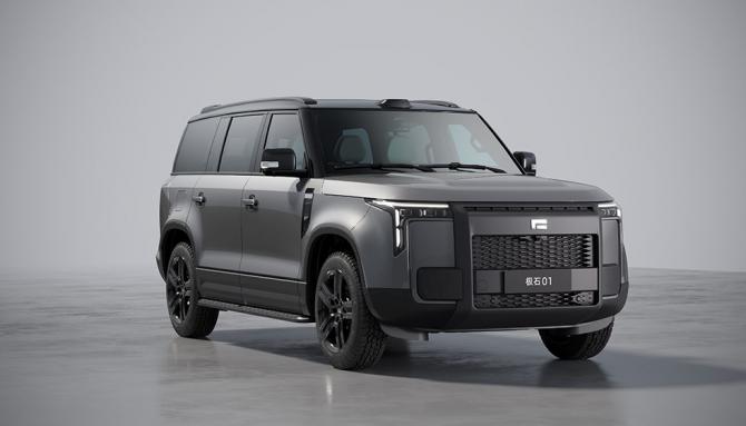 極石01造型設(shè)計(jì)風(fēng)格剛勁,車身造型硬朗。“石”字大燈靈動(dòng)智慧,進(jìn)氣格柵周正大氣,車尾“石”字尾燈立體溫潤(rùn)。車身側(cè)面,筆直的水平腰線如刀鋒般銳利,充滿肌肉感的輪拱,配合大尺寸輪轂,突顯出強(qiáng)悍的戶外性能。