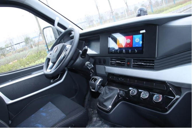 東風(fēng)御風(fēng)V9E的儀表和中控采用“雙聯(lián)屏”設(shè)計(jì)——12英寸全液晶儀表盤,將時(shí)速、轉(zhuǎn)速、電壓、電池續(xù)航等信息集成在一起,駕駛員可以很方便地了解到車輛的實(shí)時(shí)運(yùn)行狀態(tài);搭配的10.36英寸智慧語音大屏,內(nèi)嵌MP5、車輛導(dǎo)航、倒車影像等功能,帶給用戶智能便捷的駕乘體驗(yàn)。