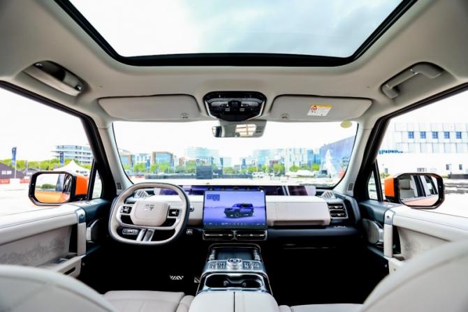 縱橫G700打破“越野必粗糙”的刻板印象,將硬派越野的實用性與豪華座艙的舒適性完美融合,儀表臺采用真皮壓印工藝,搭配珠峰8848等高線紋理,細節(jié)彰顯卓越品質(zhì)。