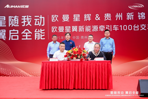 簽約儀式后,歐曼星輝營(yíng)銷公司云貴分公司總經(jīng)理李錦松與客戶共同開啟100臺(tái)歐曼星翼400kWh新能源牽引車正式交付的里程碑時(shí)刻,見證歐曼新能源運(yùn)力裝備成為貴州物流客戶降本增效的新選擇,助力客戶全面強(qiáng)化運(yùn)輸競(jìng)爭(zhēng)力、提高運(yùn)營(yíng)效益,贏領(lǐng)未來。