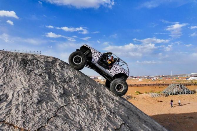 如果說(shuō)沙漠沖沙是速度與激情的釋放,那么巖壁攀爬則是力量與控制的藝術(shù)。10月1日,在阿拉善夢(mèng)想公園攀巖賽道,著名越野攀爬玩家、虎克之路創(chuàng)始人高勁松,駕駛著一輛爆改版坦克為全場(chǎng)觀眾奉獻(xiàn)了一場(chǎng)心跳加速的極限攀爬表演。
