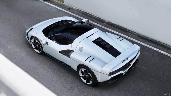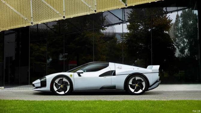 前翼子板末端采用方形輪廓設(shè)計(jì),可優(yōu)化底盤氣流穩(wěn)定性;車門及后翼子板上的巨型三角形中冷器進(jìn)氣口,則借鑒了品牌經(jīng)典的NACA導(dǎo)管設(shè)計(jì),兼顧散熱需求與歷史傳承感。值得注意的是,新車未沿用傳統(tǒng)的“法拉利紅”Rosso Corsa配色,而是采用專屬定制的Bianco SC40珍珠質(zhì)感白色漆面,搭配流暢的車頂線條與圓潤(rùn)的輪拱曲線,既保留經(jīng)典影子又彰顯現(xiàn)代氣質(zhì)。