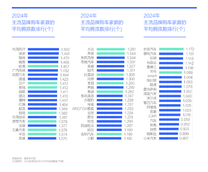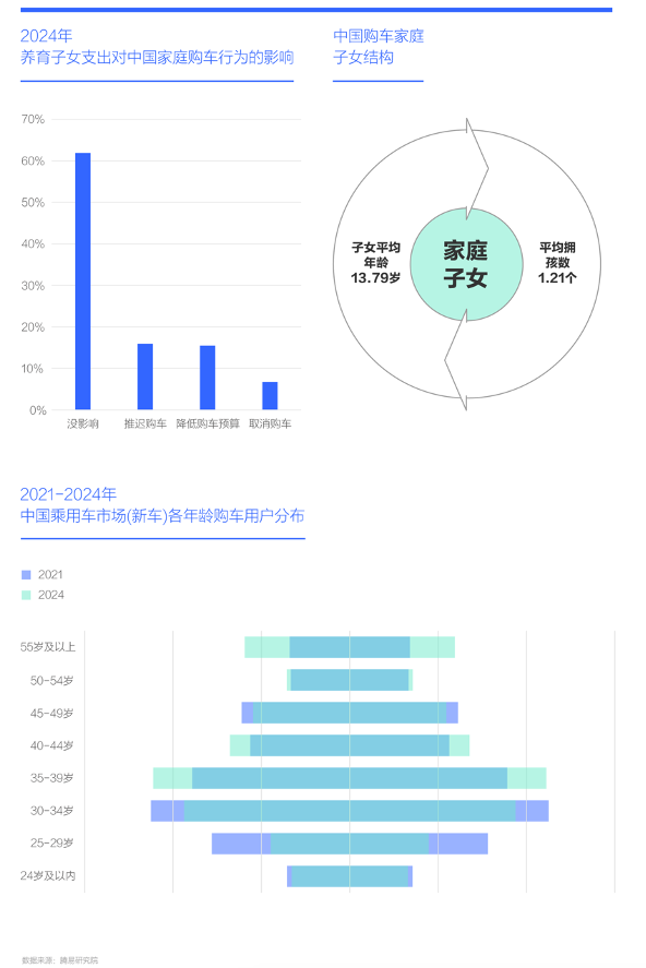 從數(shù)量看,2024年中國購車家庭的平均擁孩數(shù)1.21個,2孩及以上占比33.49%,子女用車場景豐富,容易成為購車家庭的重點訴求