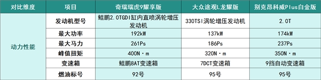 昂科威Plus白金版搭載2.0T發(fā)動機(jī)與9AT變速箱,最大馬力237Ps,最大功率174kW,峰值扭矩350N?m,動力參數(shù)介于瑞虎9耀享版和途觀L龍耀版之間,但該車需加注95號汽油,長期用車會增加燃油成本,且偏遠(yuǎn)路段補(bǔ)給不便;同時(shí)底盤調(diào)校略顯硬朗,行駛在非鋪裝路面時(shí),車內(nèi)會感受到明顯震動,對乘坐舒適性有一定影響,更適合偏好清晰路感且不介意較高用車成本的用戶。