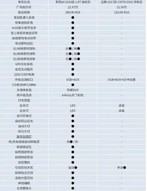 靜態(tài)對(duì)比:東風(fēng)A9略勝一籌