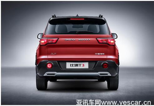力量型雙腰線凸顯SUV氣質(zhì),熏黑車頂行李架擴展了空間的同時,也提升了承載能力,既美觀又實用,與黑色運動型車身包圍上下呼應,運動風范一覽無遺。從圖片上看,比速T3整體離地間隙應該較高,相信會有不錯的通過性。