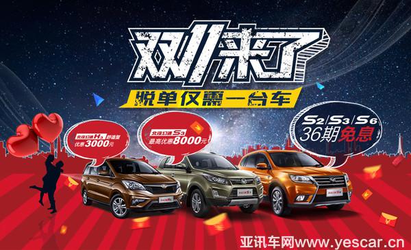 傾情鉅獻,惠上加惠,北汽幻速雙十一大促感恩回饋消費者,如果您正在考慮選購備受熱捧的“越級配置王”幻速S6、或者北汽幻速S2、S3系列、北汽幻速H3、H3F系列等,北汽幻速雙十一鉅獻無疑締造了最佳的出手時機。更多詳情敬請關(guān)注北汽幻速官方網(wǎng)站,我們期待與您相約,為您開啟夢想中的有車生活!