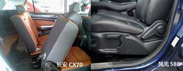 既然兩款都是7座SUV車型,空間上的對比怎能小覷。兩款車型都采用了2+3+2的布局,但是長安CX70在座椅方面算是耍了個“小心機” CX70的第二排座椅可以前后移動并可以4/6翻折,空間靈活性要更高,如果你的乘客有個高個子,座椅卻不能前后移動,那這個車主到時候可要尷尬了。