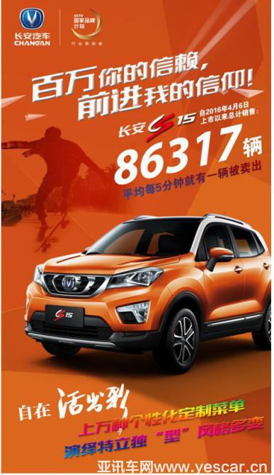 作為CS系列在售最年輕車型,長安CS15于2016年4月上市,它抓住了90后消費(fèi)者個(gè)性、前衛(wèi)、市場的特點(diǎn),率先推出個(gè)性化定制。出奇招,收奇效,長安CS15上市后的銷量表現(xiàn)一路走高,上市不足一年就收獲86,317位車主青睞。剛過去2017年1月,長安CS15持續(xù)熱銷,進(jìn)一步擴(kuò)大著自己的車主群體。