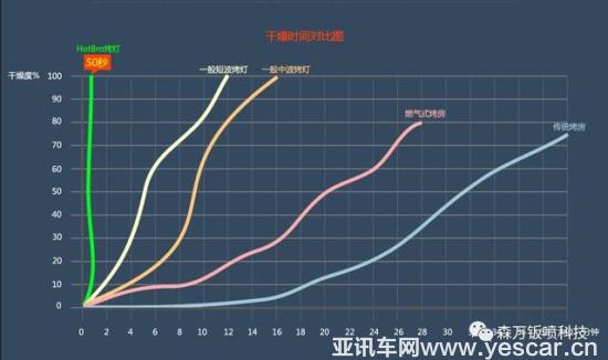膩?zhàn)?、底漆、水性漆、清漆所有烤漆時(shí)間加起來不到6分鐘,整車從開工到交工只需30分鐘,而用傳統(tǒng)的鈑金烤燈最快也要2小時(shí)。通過補(bǔ)天士1號(hào)與其他漆面烤干方法的對比數(shù)據(jù)(如下圖)可以發(fā)現(xiàn),補(bǔ)天士烤燈平均每項(xiàng)工序僅需50秒,比市面上所有烤漆設(shè)備都要快,快到無燈可比的地步??磥怼盎我换尉透闪恕边@句產(chǎn)品口號(hào)絕非嘩眾取寵。