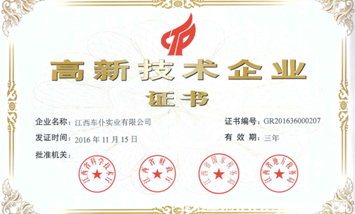 車仆南昌工業(yè)園在2016年11月,榮獲國家高新技術(shù)企業(yè)。