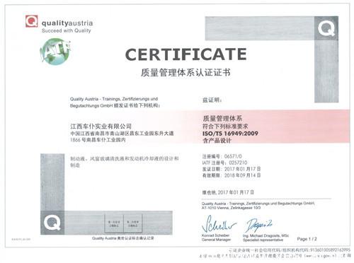 2017年初,在經(jīng)過IATF國際汽車工作組的嚴(yán)格審定,車仆集團(tuán)正式通過ISO/TS16949認(rèn)證。此次車仆取得該認(rèn)證,說明其產(chǎn)品質(zhì)量不僅國內(nèi)領(lǐng)先,并且得到了國際市場高度認(rèn)可!