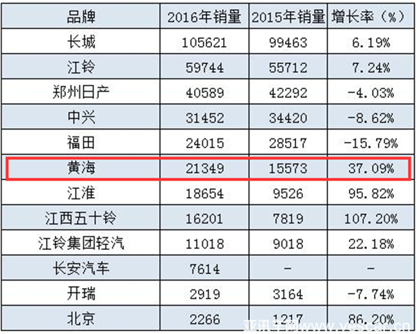 作為遼寧本土企業(yè),黃海汽車有著東北爺們兒敢想、敢做、敢闖的個(gè)性。在解禁政策的惠及下,黃海汽車快速更迭新車型,先后推出了黃海N1、N1S、N2、N2S、N2單排皮卡、N1單排皮卡以及即將面世的N3等多款新車型。2016年,黃海汽車以21349輛的銷量牢牢占據(jù)市場第六的寶座,37.09%的增長率是其發(fā)展強(qiáng)勁、備受認(rèn)可的最好證明。在不斷推出新產(chǎn)品的同時(shí),黃海汽車一直致力于拓展新能源皮卡領(lǐng)域,已成功研發(fā)出CNG雙燃料型皮卡、電動皮卡,成為皮卡行業(yè)內(nèi)當(dāng)之無愧的“綠色企業(yè)”。