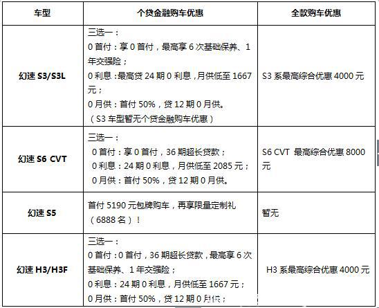 參與本次活動(dòng)的車型涉及S系列(幻速S3/S3L、幻速S6 CVT)及H系列(幻速H3/ H3F)多款熱銷車型。