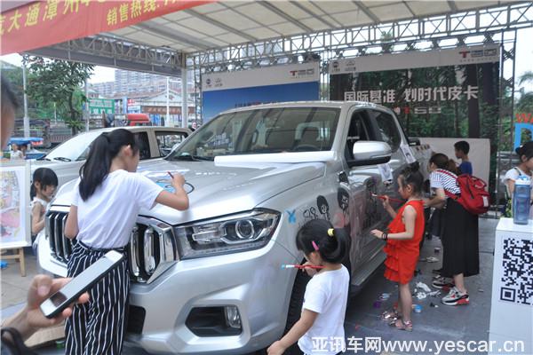 上汽大通T60在皮卡中國行巡展漳州站中的魅力是不可阻擋的,現(xiàn)場吸引了很多的人氣。并邀請大舟美術(shù)為上汽大通T60威猛魁梧車身做車體彩繪,好多小朋友在家長和老師的指導(dǎo)下在上汽大通T60白色的車體上繪出栩栩如生的圖畫,使上汽大通T60在現(xiàn)場成為了色彩繽紛的一頭神牛。