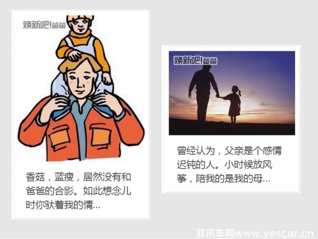近幾日,北京現(xiàn)代攜手58車(chē)舉辦的“煥新吧!爸爸”父親節(jié)全民免費(fèi)置換新車(chē)計(jì)劃活動(dòng)頁(yè)面上的一組組與父愛(ài)有關(guān)的照片和“表白”戳了眾多人的心。