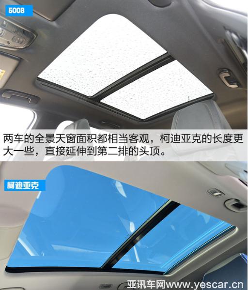 配置水平是兩款對比車型最具看點(diǎn)的部分,無論是5008還是柯迪亞克,他們的配置均比較豐富??碌蟻喛巳禈?biāo)配了LED日間行車燈、車頂行李架、全景大天窗、電子手剎、定速巡航、自動(dòng)駐車、ESP車身穩(wěn)定系統(tǒng)、胎壓監(jiān)測系統(tǒng)、MKE智能疲勞提醒功能等和后倒車?yán)走_(dá)。標(biāo)致5008全系標(biāo)配LED日間行車燈、LED尾燈、換擋撥片、手機(jī)互聯(lián)、胎壓監(jiān)測等、雙區(qū)自動(dòng)空調(diào)+第二排空調(diào)出風(fēng)口等配置。