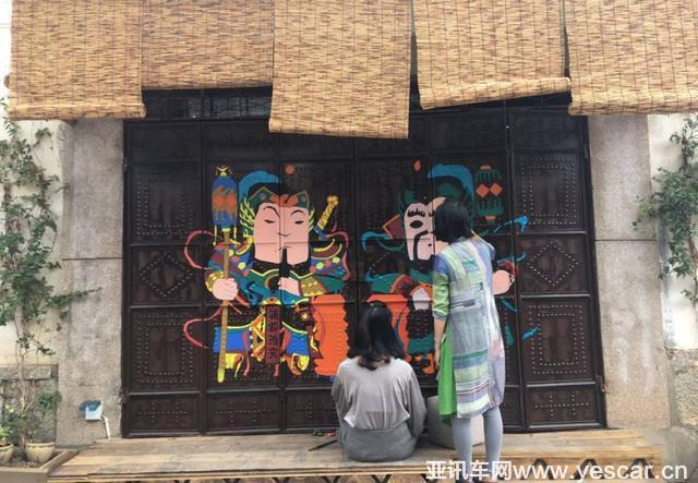 在喜洲偶遇美女在涂鴉,兩個門神也可以變得萌萌噠。