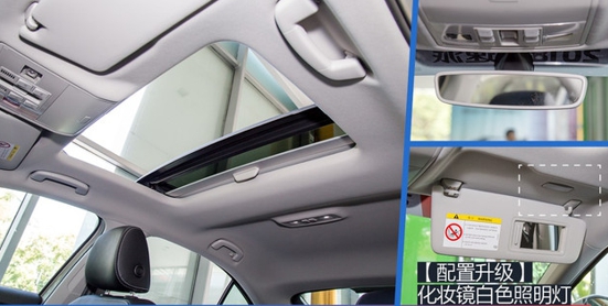 大面積天窗是速派的一大亮點(diǎn),比常見的普通型天窗具備更大的采光和通風(fēng)面積。TSI330 舒適版配有自動(dòng)防眩目后視鏡,遮陽板化妝鏡在2018 款中升級為白色照明燈。
