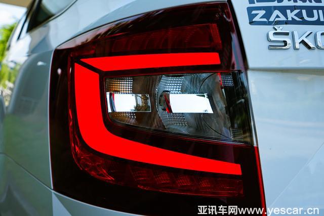 車尾是純粹的旅行車風格,跟蔚領(lǐng)那種高仿完全不同。尾燈點亮的樣子很好看,后包圍也有防撞的套件,沒有“顧頭不顧腚”。