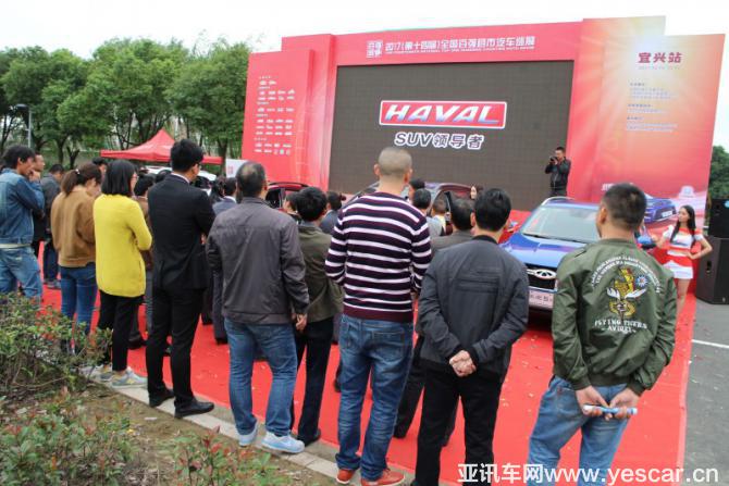 在10月14日舉辦的本次百?gòu)?qiáng)巡展宜興站開幕式上,哈弗旗下上市不久的M6被展會(huì)選為揭幕新車,由哈弗汽車宜興中正4S店展廳經(jīng)理吳金霞與當(dāng)?shù)厥孜还6車主一起為新車揭幕,引起現(xiàn)場(chǎng)觀眾的密集圍觀。