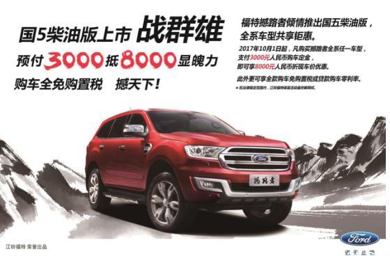 新款柴油國(guó)五版撼路者全新升級(jí),震撼上市,獲得廣大車友的一眾好評(píng)。為回饋和關(guān)心一直在支持和喜愛(ài)撼路者的消費(fèi)者。繼之前的“撼心老友季,同享三重禮”的優(yōu)惠政策之后,優(yōu)惠讓利驚喜不斷。福特撼路者又大力度的推出購(gòu)買國(guó)五優(yōu)惠的政策?,F(xiàn)購(gòu)買撼路者國(guó)五柴油版及全系車型共享鉅惠。即日起,凡購(gòu)買撼路者任一車型即可享受預(yù)付3000元定金抵8000元折現(xiàn)車價(jià)優(yōu)惠,更可享受購(gòu)置稅全免優(yōu)惠或貸款買車零利率。