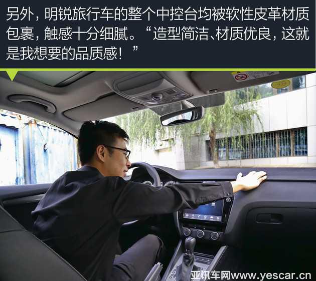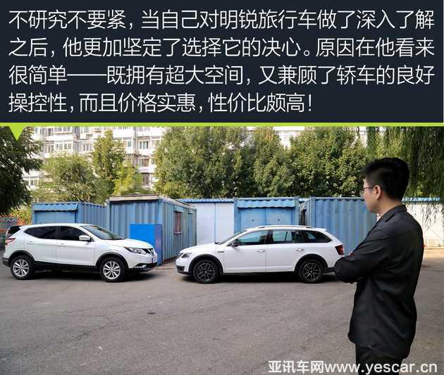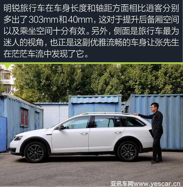 張先生坦言,自己的預算在15萬元左右,而之前很長一段時間內他都在考慮逍客這款車,因為他認為SUV車型有著更好的空間表現,直到斯柯達明銳旅行車上市,他都不知道還有旅行車這個分類。偶然的機會,他在大街上看到一輛還沒上牌的明銳旅行車,其長長的“大屁股”以及優(yōu)雅的造型瞬間吸引了他的目光。