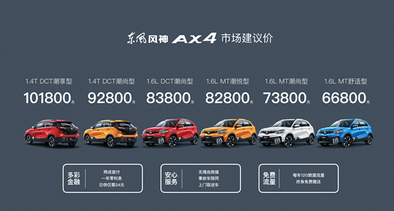 目前,AX4還針對廣大購車用戶提供“享受2成首付、一年0利息、日供僅需24元的多彩金融禮包;無理由救援、事故車陪同、上門取送車的安心服務(wù)禮包;每年12G數(shù)據(jù)流量,終身免費贈送的免費流量禮包”,共三重大禮??芍^福利多多,驚喜多多,相信未來隨著AX4逐漸被更多消費者認(rèn)可,定能在市場上取得更佳表現(xiàn)!