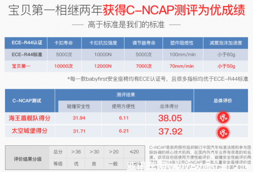 2015年9月1日,國(guó)家質(zhì)檢總局將兒童汽車(chē)安全座椅產(chǎn)品納入強(qiáng)制性3C認(rèn)證,這是安全座椅產(chǎn)品的行業(yè)門(mén)檻,大多數(shù)知名品牌,都能達(dá)到這方面的標(biāo)準(zhǔn)。寶貝第一是第一批通過(guò)國(guó)家強(qiáng)制認(rèn)證的安全座椅品牌,除了國(guó)標(biāo),寶貝第一還同時(shí)拿到了同一級(jí)別的ECE R44歐標(biāo)認(rèn)證。