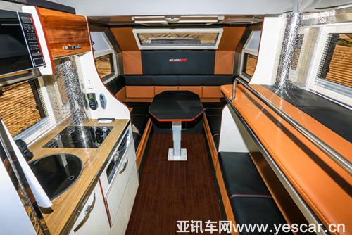 它的車頂可以自動升降,擴展出舒適的生活空間,里面配備了一個U型沙發(fā),可以變成一張大床,一個一字型沙發(fā)可變上下鋪,生活電器全部為進口房車專用設備,應有盡有,有獨立衛(wèi)浴間可以隨時來個熱水澡,最牛的地方在掛車后端配了一個韓國專用MINI洗衣機,可以在戶外隨時洗衣服,換洗再也不是問題了,戶外伸縮式移動廚房和冰箱的設計是全行業(yè)出名的,隨時在戶外的藍天白云下喝著紅酒吃著牛扒,這可以一大享受?。≤噿炜梢噪S時分離,外出時“房”與車是一體的,假期結(jié)束后“房”擱置、車照樣開,特別方便。