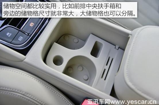 儲物空間位置比較常規(guī),不過都較為實用,比如前排的中央扶手箱,尺寸很大,中間的隔斷可以拿走形成一個大儲物格;放上隔斷,就可以放水瓶。后排的儲物空間主要就是門板內側的儲物格。