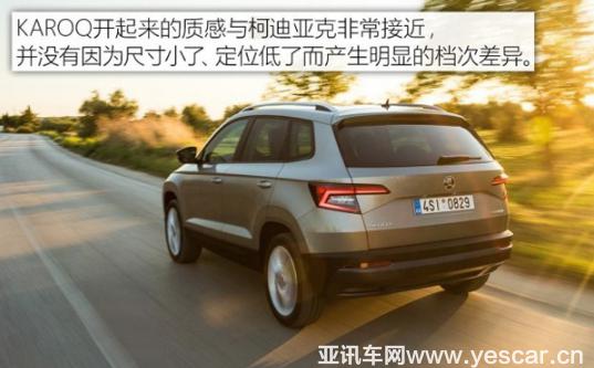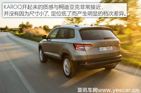 KAROQ是繼柯迪亞克與Yeti后的一款全新的緊湊型SUV,也是填補了柯迪亞克與Yeti在車型方面的空白。它整體是我們熟悉的設計語言,熟悉的轉向、油門與剎車的調校,而駕駛感受方面,噪音和振動控制都超出預期,。經過本次海外版KAROQ的試駕,小編更加期待其國產版亮相,讓更多人體驗到這款全新KAROQ。