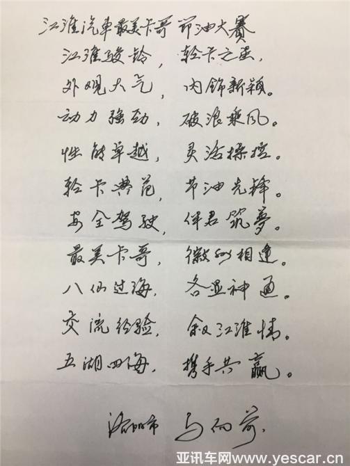 雖然無緣總決賽,但是馬向前覺得這趟行程還是很有收獲的,他認(rèn)識了很多卡哥,更加了解江淮輕卡,同時還學(xué)習(xí)了更多的節(jié)油知識。在節(jié)油明星盛典的晚宴上,他不僅分享了節(jié)油技巧,還為在場嘉賓朗誦了一首他親自為江淮寫的詩。