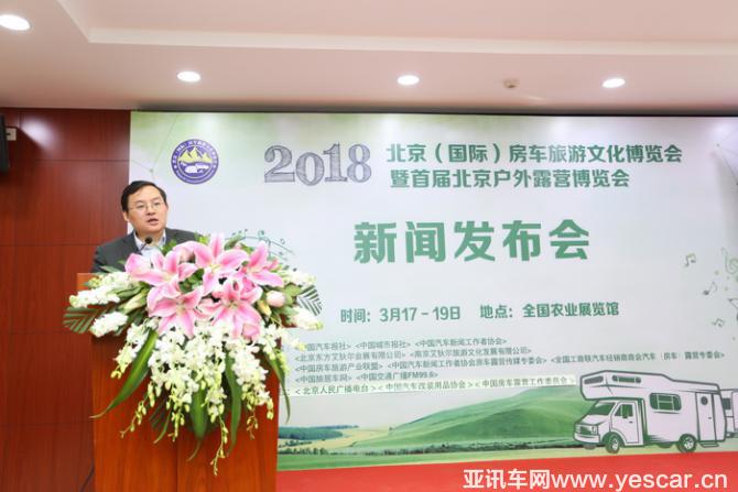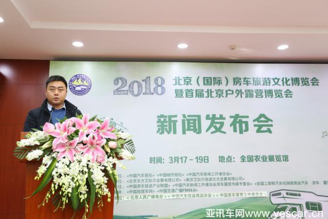 北京東方艾狄爾會展有限公司副總經(jīng)理、南京艾狄爾旅游文化發(fā)展有限公司總經(jīng)理韓君善發(fā)布2018年北京房車展十大主題活動