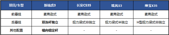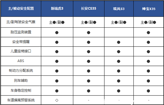 (瑞虎3、長(zhǎng)安CS35、瑞風(fēng)S3、紳寶X35安全配置對(duì)比)