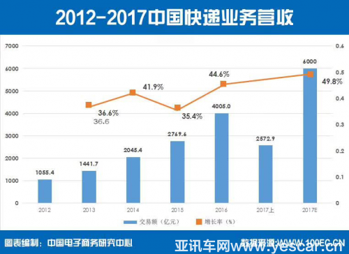 隨著互聯(lián)網(wǎng)技術(shù)的發(fā)展以及天貓、京東、唯品會(huì)、蘇寧易購等網(wǎng)商平臺(tái)的崛起,2017年上半年中國電子商務(wù)交易額13.35億元,同比增長27.1%。網(wǎng)商的繁榮帶來電子商務(wù)物流的快速發(fā)展,2017年上半年,中國快遞業(yè)務(wù)營業(yè)收入為2572.9億元,預(yù)計(jì)2017年底將達(dá)到6000億元,同比增長49.8%。在電商生態(tài)高速發(fā)展的背后是物流運(yùn)輸需求的快速升級,高品質(zhì)、高效的物流運(yùn)輸工具將成為助力電商持續(xù)繁榮與高速發(fā)展的強(qiáng)力保障。