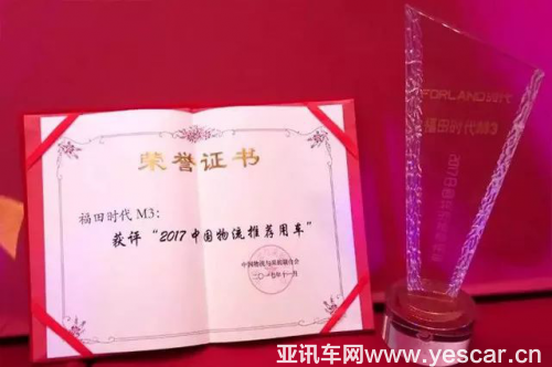 2017年6月,福田時(shí)代M3被中國物流和采購聯(lián)合會(huì)授予“2017年度智能物流裝備”大獎(jiǎng);2017年9月,在由中國商用汽車資訊舉辦的第十屆中國國際卡車節(jié)油大賽中脫穎而出,獲得輕卡“節(jié)油冠軍”;在由中國汽車報(bào)與中國汽車工程研究院聯(lián)合舉辦的2018中國商用車年度車型評選活動(dòng)中,經(jīng)過多名業(yè)界知名專家測評,獲得“年度節(jié)油車型”;2017年10月,在中國卡車行業(yè)首屆我是意見領(lǐng)袖活動(dòng)中獲得“中國卡車意見領(lǐng)袖推薦品牌”;2017年12月,在由中國物流與采購聯(lián)合會(huì)等單位舉辦的中國物流發(fā)展大會(huì)上被評價(jià)為“中國物流推薦用車”;在由浙江廣播電視集團(tuán)及杭州日報(bào)業(yè)集團(tuán)等媒體單位舉辦的“星車主 星車型”活動(dòng)中獲得“年度城市高效物流輕卡”殊榮。福田時(shí)代M3上市短短半年,獲得了客戶、媒體、行業(yè)的高度認(rèn)可。