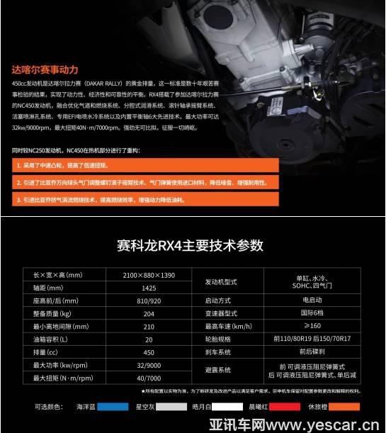 賽科龍RX4在今年摩博會一亮相就吸引了很多探險車愛好者的關(guān)注,作為國內(nèi)最早的國產(chǎn)拉力車型之一,賽科龍RX3圓了很多車友的探險夢,而RX4在經(jīng)歷了上萬公里的路試、收集上百人的寶貴意見,經(jīng)歷上千次的調(diào)試,今天終于與大家見面。