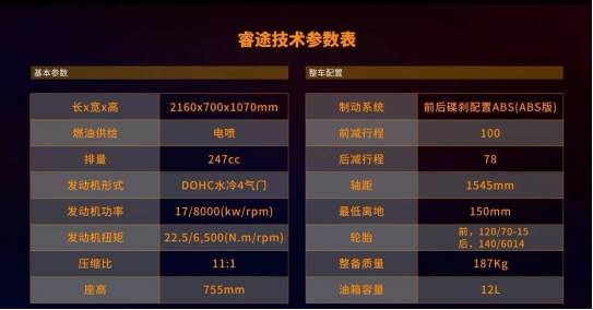 RT3睿途,采用進(jìn)口的DOHC 250mL水冷四汽門發(fā)動機(jī),德爾福電噴,最大功率17kW/8000rpm,最大扭矩22.5N·m/6500rpm。還擁有前后雙碟剎,博世ABS系統(tǒng),無鑰匙啟動,大風(fēng)擋,全車LED燈具等配置,再加上外形大氣,相信這款踏板必將是你摩旅休閑騎行的不二之選。