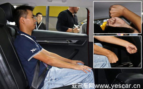 前排座椅保持不變,同一體驗(yàn)者移至后排,頭部有兩拳的剩余空間,腿部剩余空間則超過(guò)兩拳,這一表現(xiàn)讓人滿意。