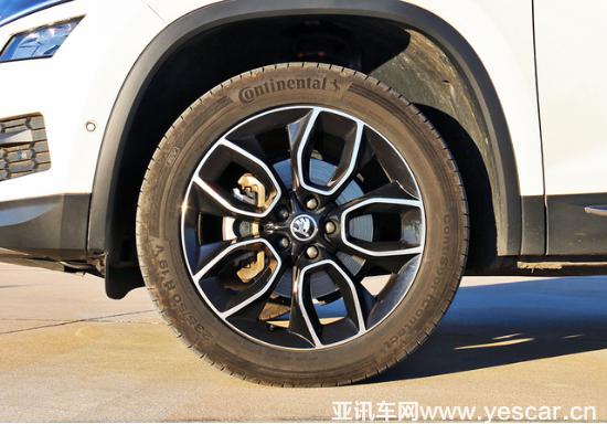 柯迪亞克的雙五輻式輪圈采用了黑、銀配色,前衛(wèi)的造型與整車(chē)設(shè)計(jì)相輔相成。本次選擇的車(chē)型配備了尺寸為235/50 R19的馬牌輪胎,霸氣十足。