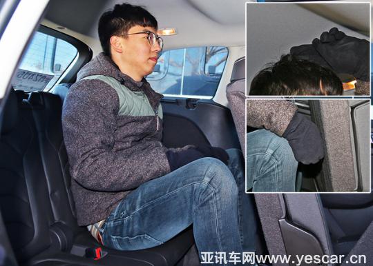 在保持前兩排座椅不變的前提下,體驗(yàn)者在第三排的空間非常局促,尤其腿部空間已經(jīng)沒(méi)有剩余。