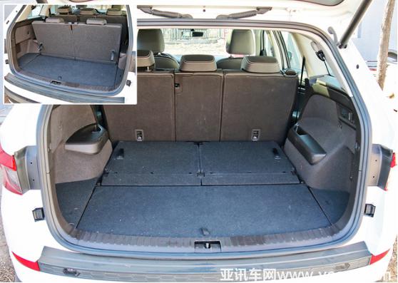 在七座模式下,柯迪亞克的行李廂容積為190L,僅能滿足輕度儲(chǔ)物需求。而將后兩排座椅完全放倒后,它的行李廂可以擴(kuò)容至2065L,裝載能力非常強(qiáng)大。