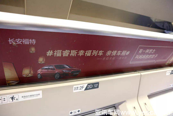 長(zhǎng)安福特福睿斯聯(lián)手鳳凰網(wǎng)、12306客戶端、高鐵雜志《旅伴》等平臺(tái),在2018年1月30日-3月31日期間,聯(lián)手為春節(jié)回家的朋友打造往返于成都-上海的 “福睿斯幸福號(hào)”專屬列車(D354 / D352)。乘坐“福睿斯幸福號(hào)”動(dòng)車的旅客,可以近距離感受“一路有你”定制主題車廂帶給你的溫情和幸福。
