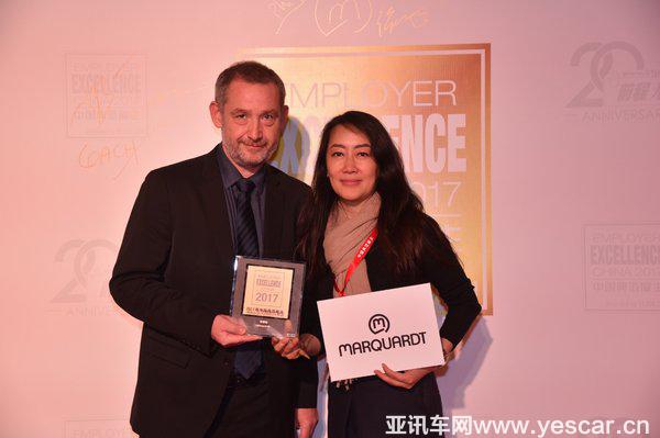圖為2017年12月典范雇主頒獎典禮。左為馬夸特中國總經(jīng)理Philippe Ce先生,右為馬夸特中國人力資源總監(jiān)張紋女士