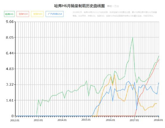依托上汽通用五菱在低端市場的基礎,過去幾個月,寶駿510在SUV月度銷量榜上對哈弗H6的霸主地位發(fā)起了攻勢。然而,隨著1月哈弗H6再以約1000臺的優(yōu)勢壓倒對手,在2月春節(jié)開始進入車市淡季之后,寶駿510的此波攻勢料將暫告一段落。