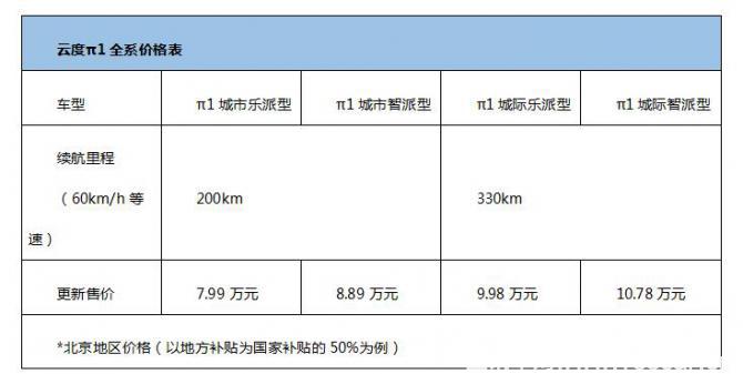 此外,基于本次推出的三年回購計劃,云度新能源更新了云度π1全系的終端售價,以北京地區(qū)為例: