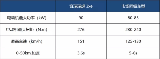 電機(jī)安全方面,瑞虎3xe 400搭載了一臺(tái)最大功率為 90kW,峰值扭矩為 276Nm 的高性能永磁同步電機(jī),實(shí)現(xiàn)最高車速達(dá)到151 km/h,4s以內(nèi)即可完成0-50km/h加速, 相比同級(jí)車型具有更好的動(dòng)力性能表現(xiàn)。